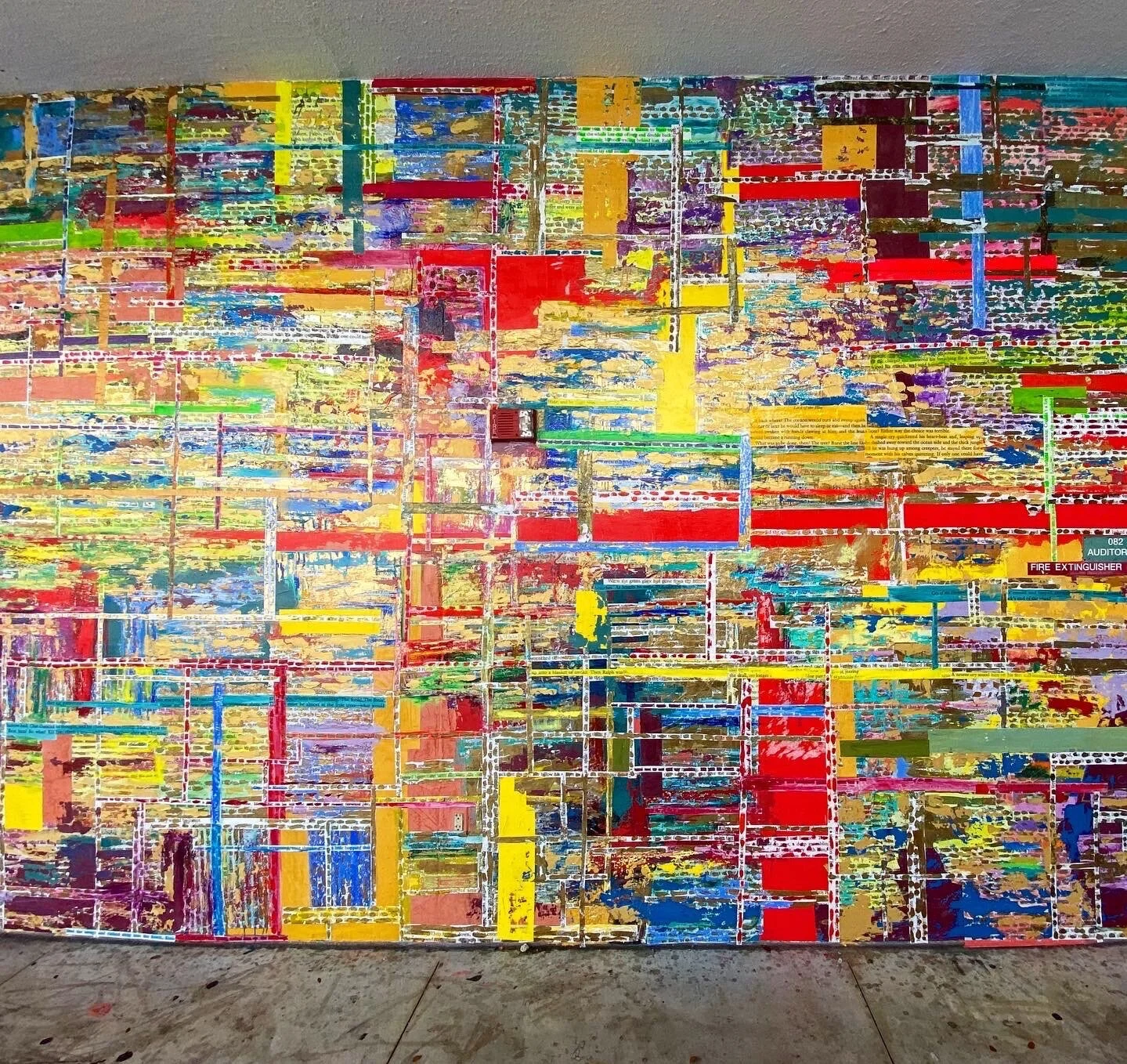 I was selected by The RAW Project to be one of several artists creating murals for students at Jose de Diego Middle School in Miami's fabulous art district, Wynwood. I donated my time and talent for this mural, which was executed during Art Basel-Miami. My recent work has incorporated excerpts from relevant books, and this mural is built on William Golding's Lord of the Flies, which I thought might to be relevant to students in this age group. My hope was that they will be interested not only in my art, but in reading the book.
